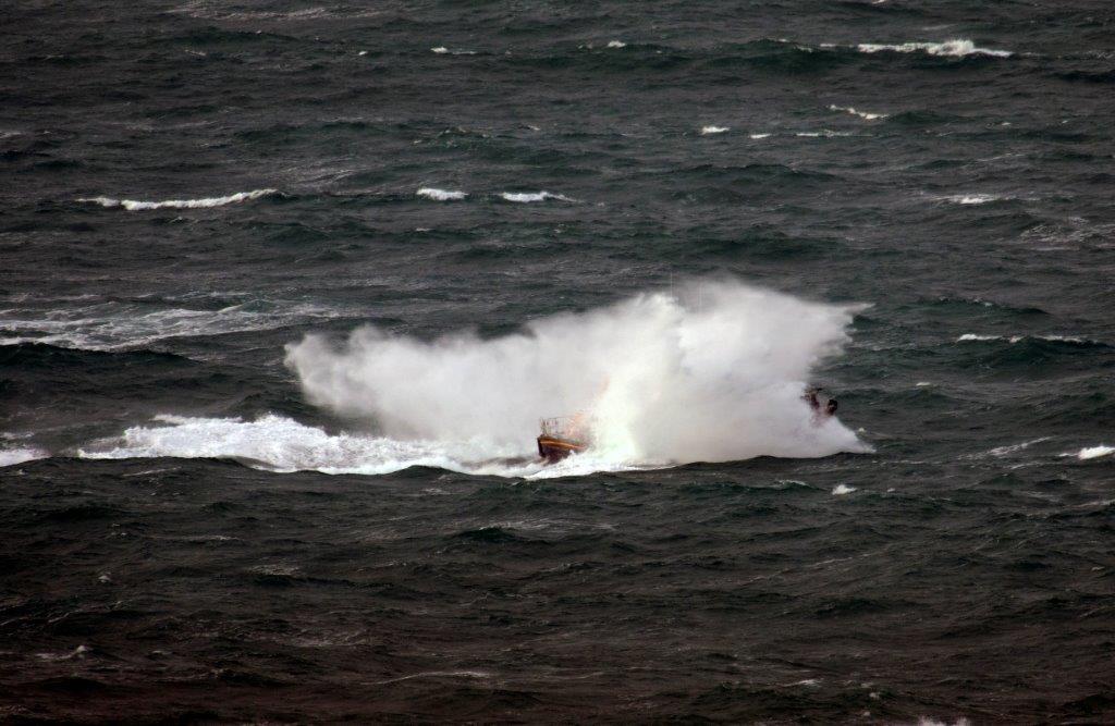 2100 Tow established- Lifeboat +”Grasort” returning to St Peter Port. The tow is very difficult as the rudder is jammed hard starboard so tow is only making 8 knots.