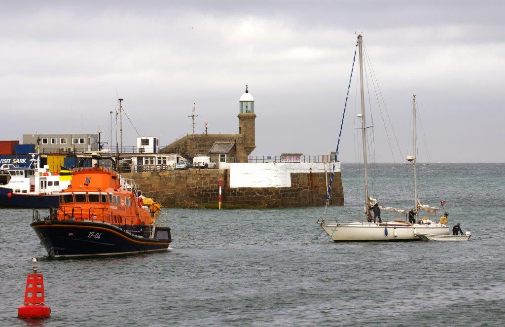 As no other vessel was able to assist, the St Peter Port Lifeboat “Spirit of Guernsey” was launched at 20:30 to tow the forty five foot Barnabas with eight crew to Guernsey.
